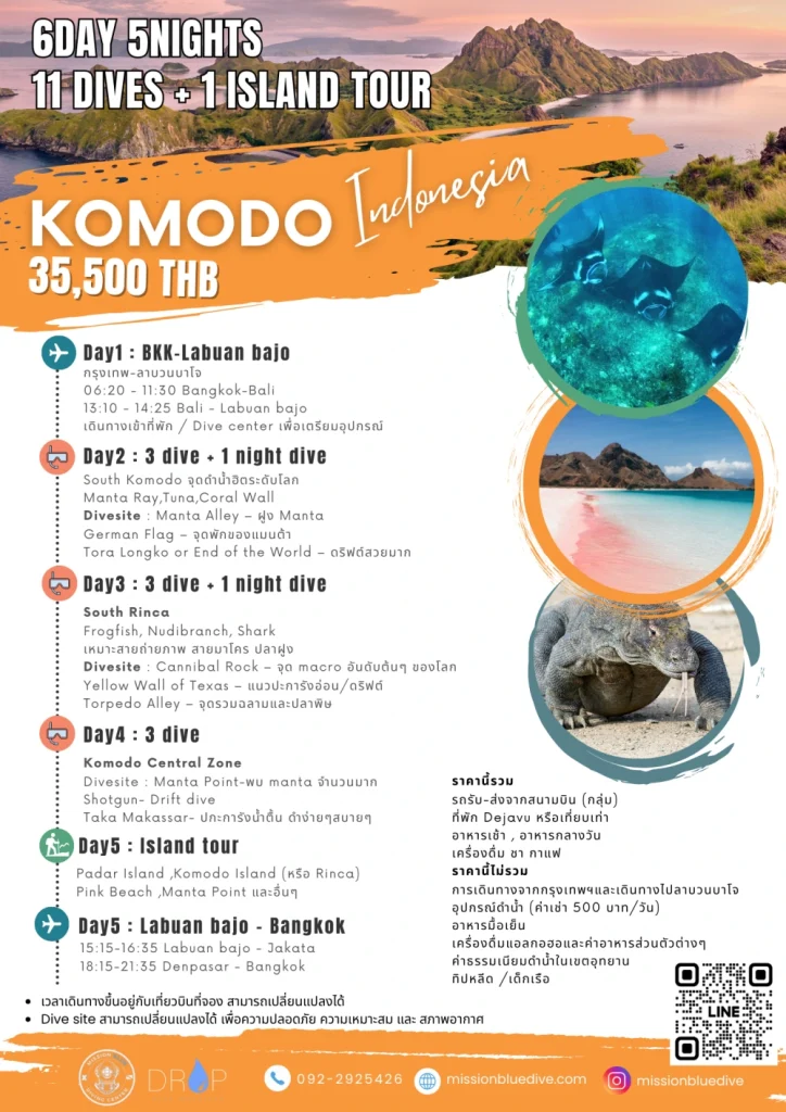 ไฮไลต์: จุดดำน้ำรอบเกาะโคโมโด รินจา ปาดาร์ เพื่อพบปลากระเบนแมนต้า ฉลาม และสัตว์ทะเลหลากหลาย ในกระแสน้ำที่อุดมด้วยแพลงก์ตอน