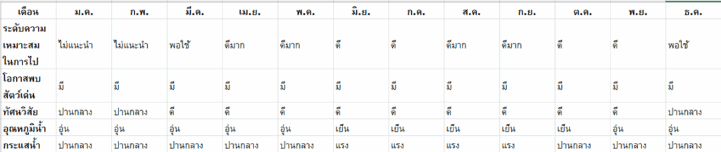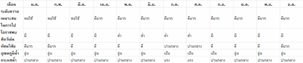 หมายเหตุ: การดำน้ำที่โคโมโดทำได้ตลอดปี แต่แบ่งฤดูกาลชัดเจน: